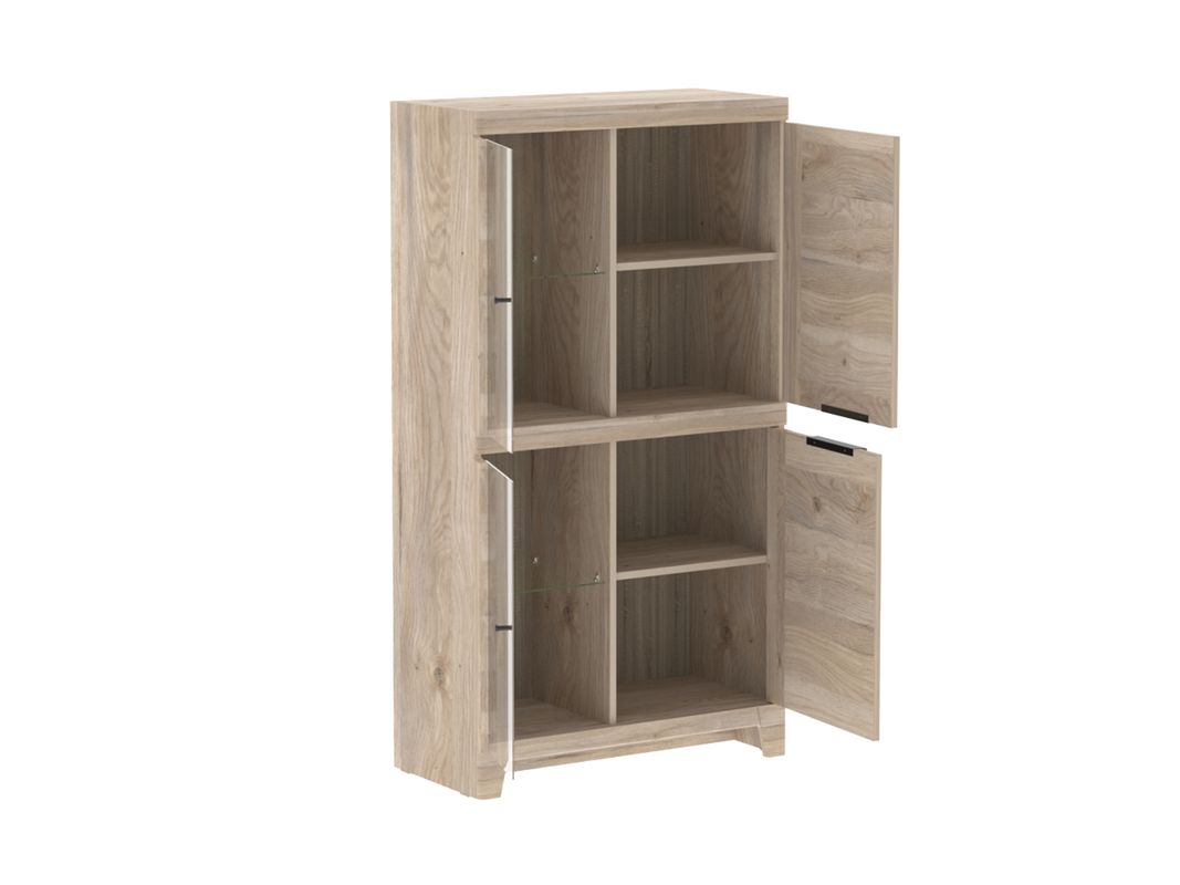 В конструкции пенала нет острых углов, округлость и мягкость придают декоративные планки. Металлические ручки-профиль выполненные в черном цвете подчеркивают натуральный древесный декор.