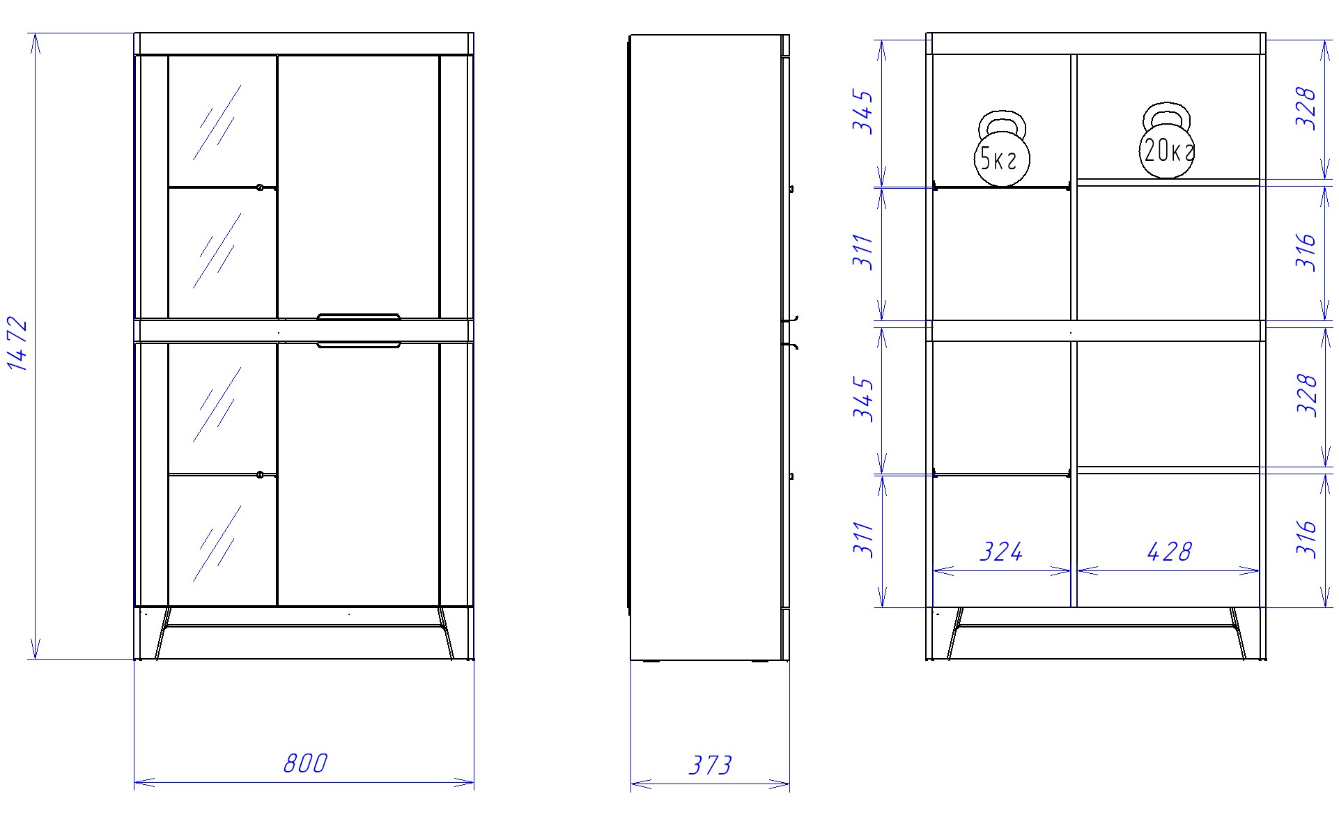 Расположение дверей в пенале Юта (стекло/глухая) определяется при сборке, присадка универсальная.