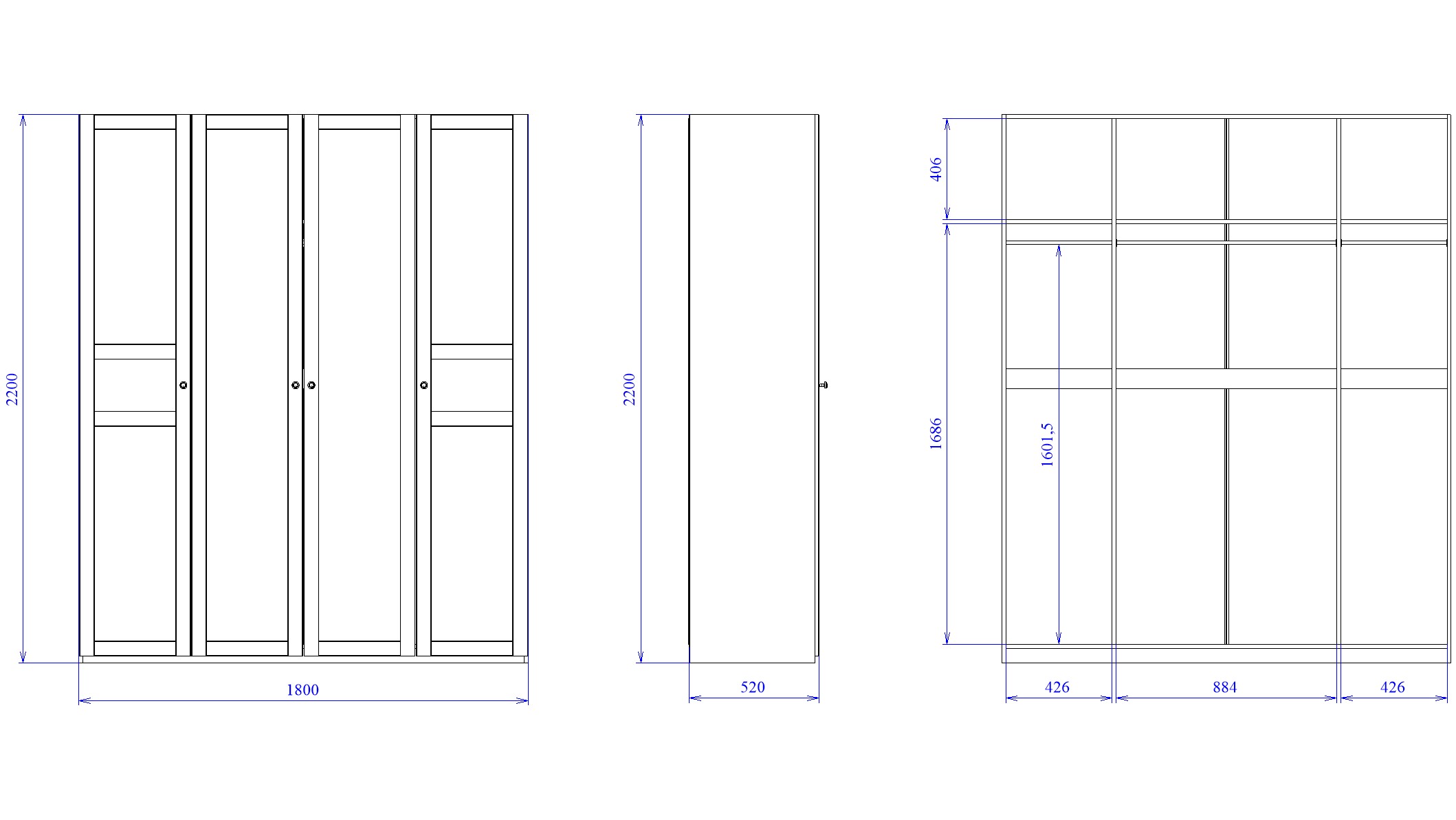 Шкаф 4-х дверный Фрея с комбинированными дверями, Белый отражает тренд на лаконичность. А за красивым фасадом скрывается хорошо продуманное внутреннее пространство, на удивление даже более вместительное, чем можно было бы подумать, глядя на габариты (1800*500*2200мм).