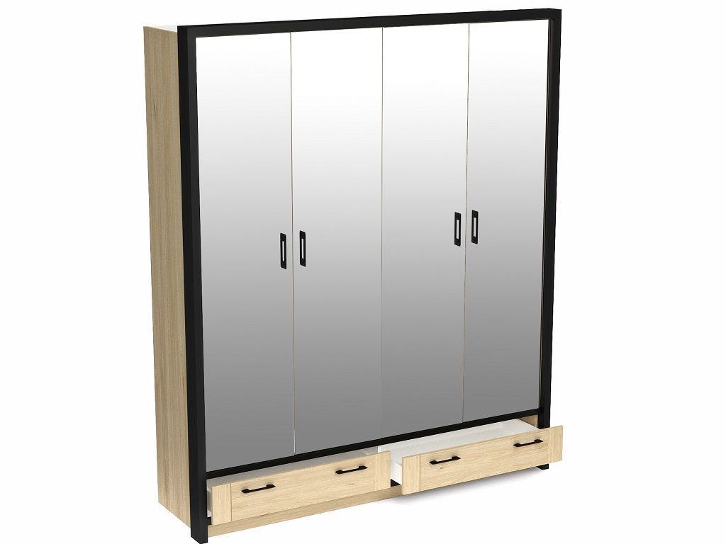 Шкаф 4-х дверный с зеркальными дверями, Бостон, Гикори Джексон отражает тренд на лаконичность: никаких вычурных элементов, все внимание на выигрышную текстуру и оригинальную расцветку под дерево. А за красивым фасадом скрывается хорошо продуманное внутреннее пространство, на удивление даже более вместительное, чем можно было бы подумать, глядя на габариты (1852*526*2200).