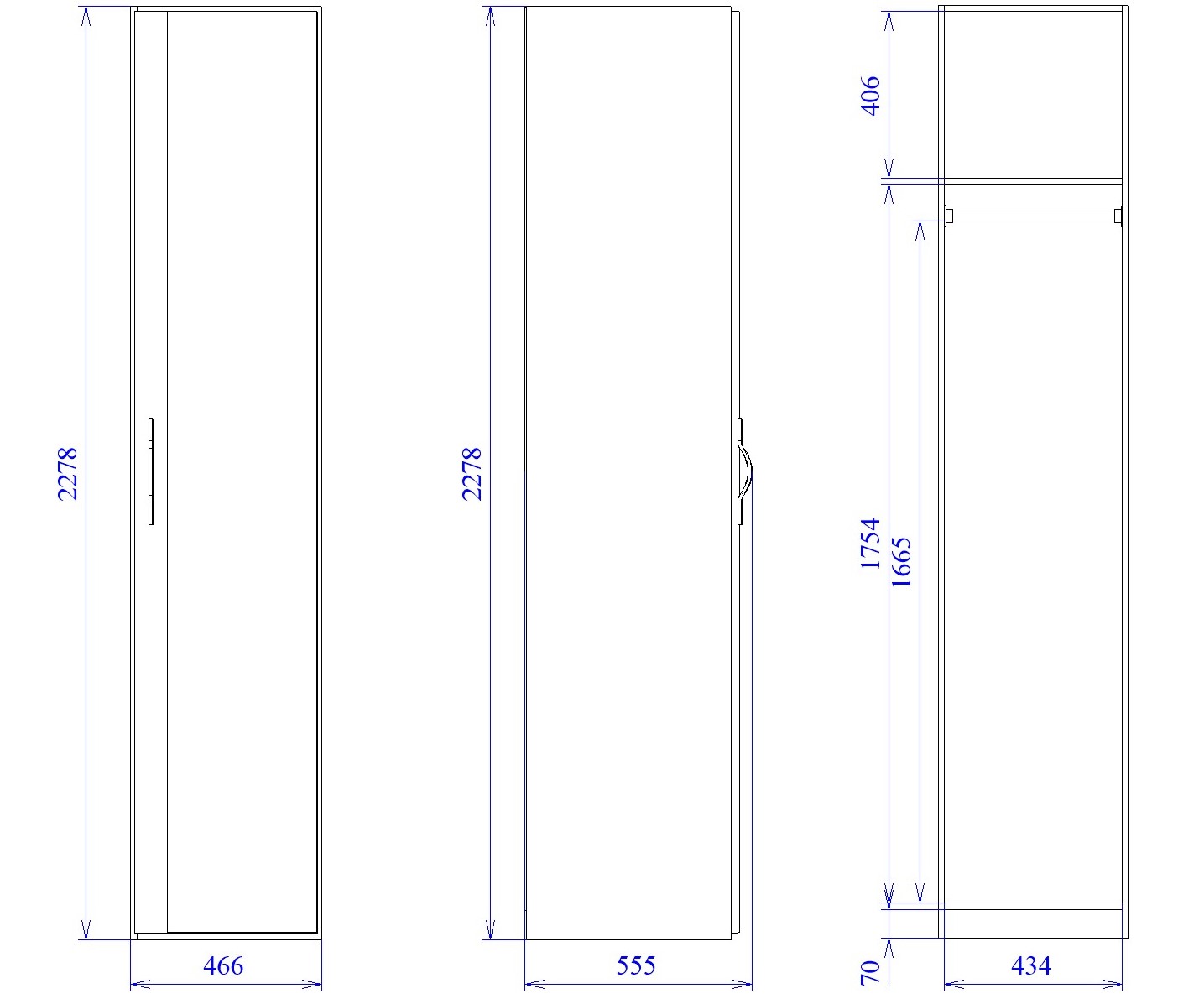 Направление открывания дверей определяется при сборке.