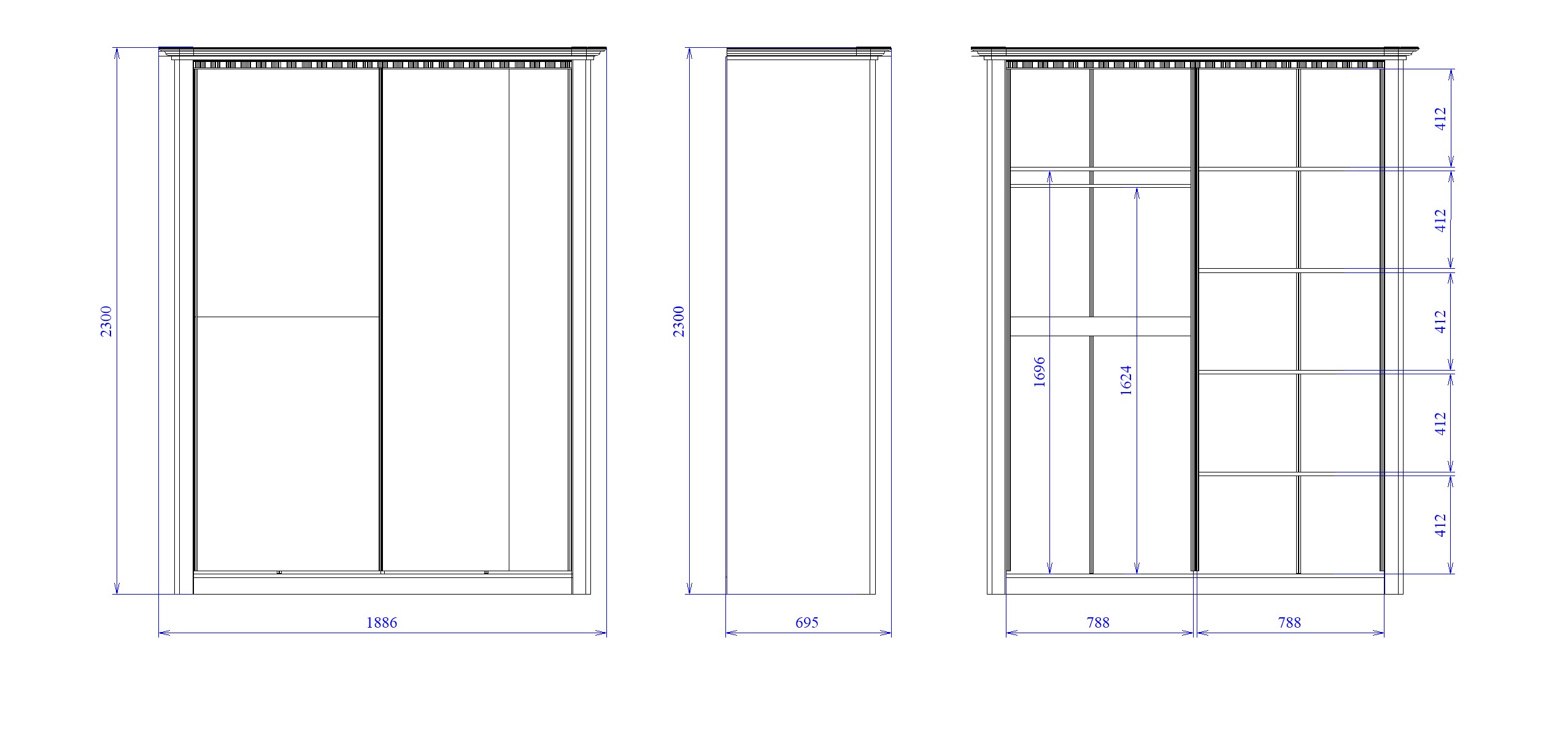 Шкаф-купе 2-х дверный NEW, Клер двери комбинированные — яркий пример такой концепции. Модель имеет габариты (1886*695*2300 мм) и продуманное внутреннее пространство для хранения одежды и других вещей, к которым обеспечивается легкий доступ. Благодаря двери-купе шкаф удобно открывается, и для этого не требуется дополнительное место, как в случае с распашными створками. Цена обусловлена и надежными направляющими в комплекте, которые обеспечивают плавное и бесшумное открывание. Качество материалов тоже на высоте, они рассчитаны на многолетнюю эксплуатацию.