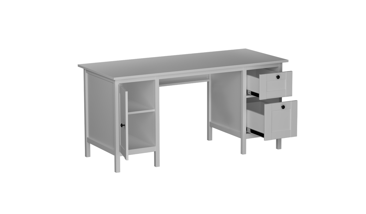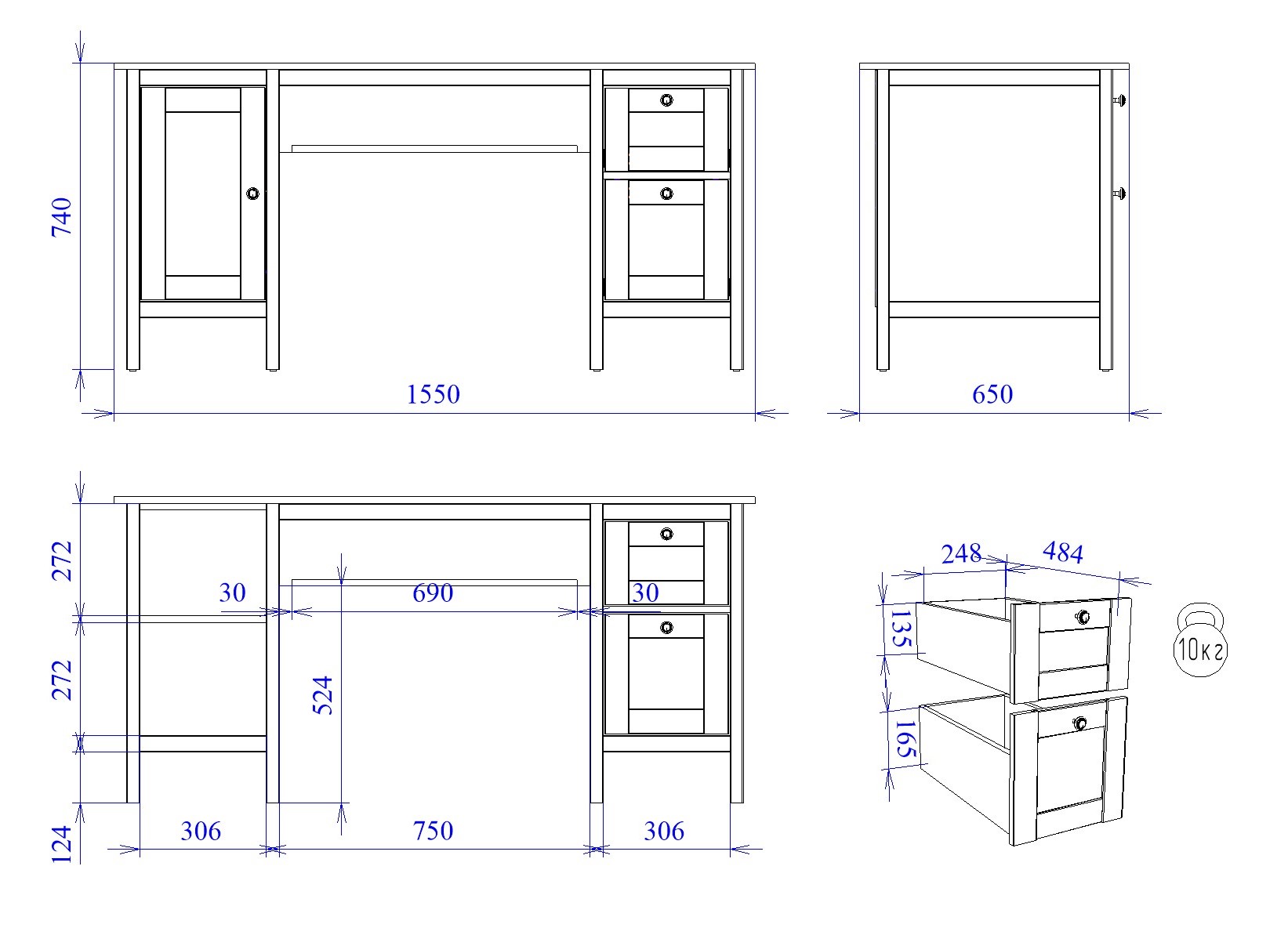 Модель стола универсальная, расположение ящиков (слева или справа) определяется при сборке.
