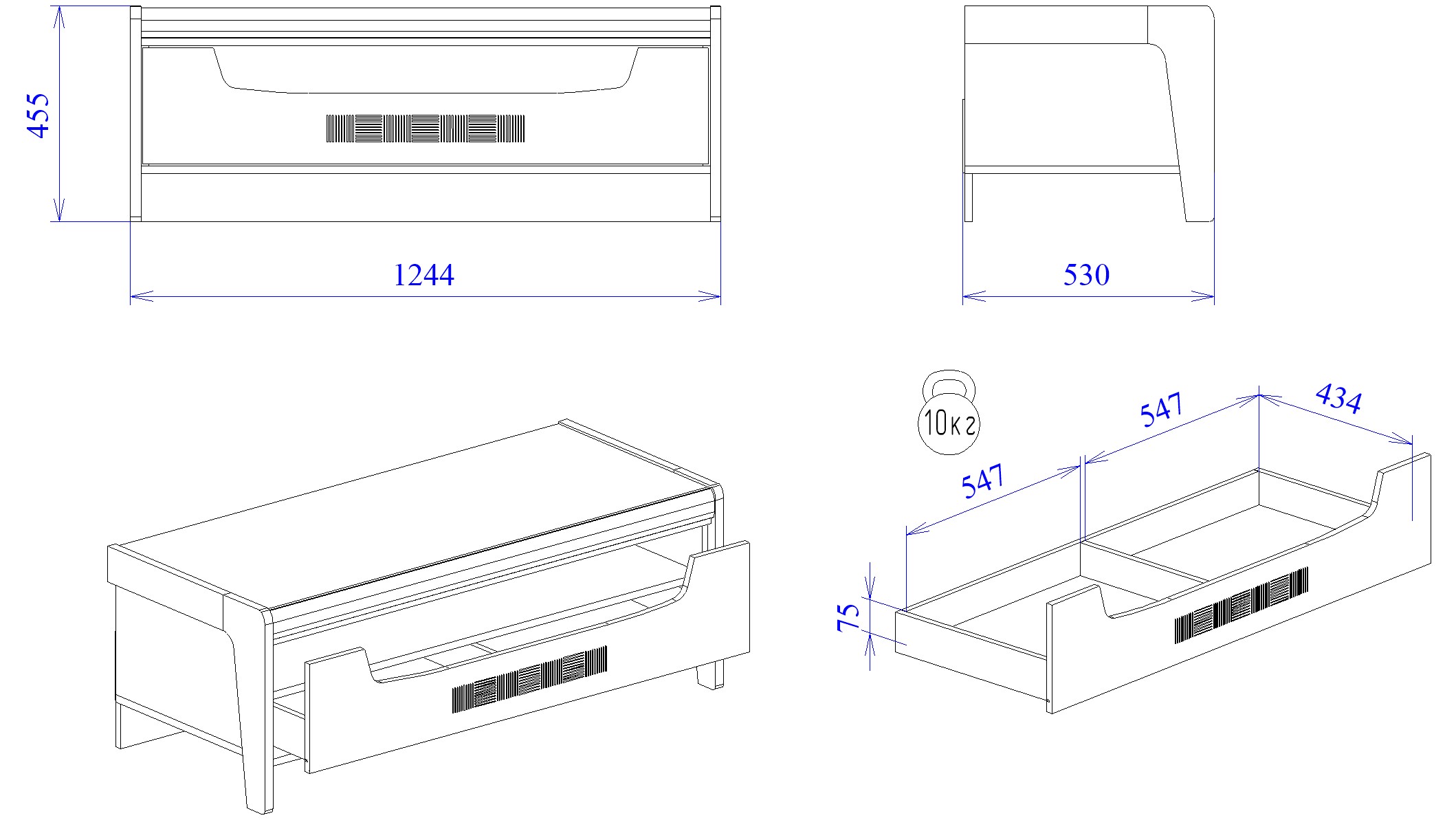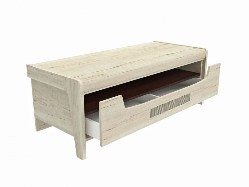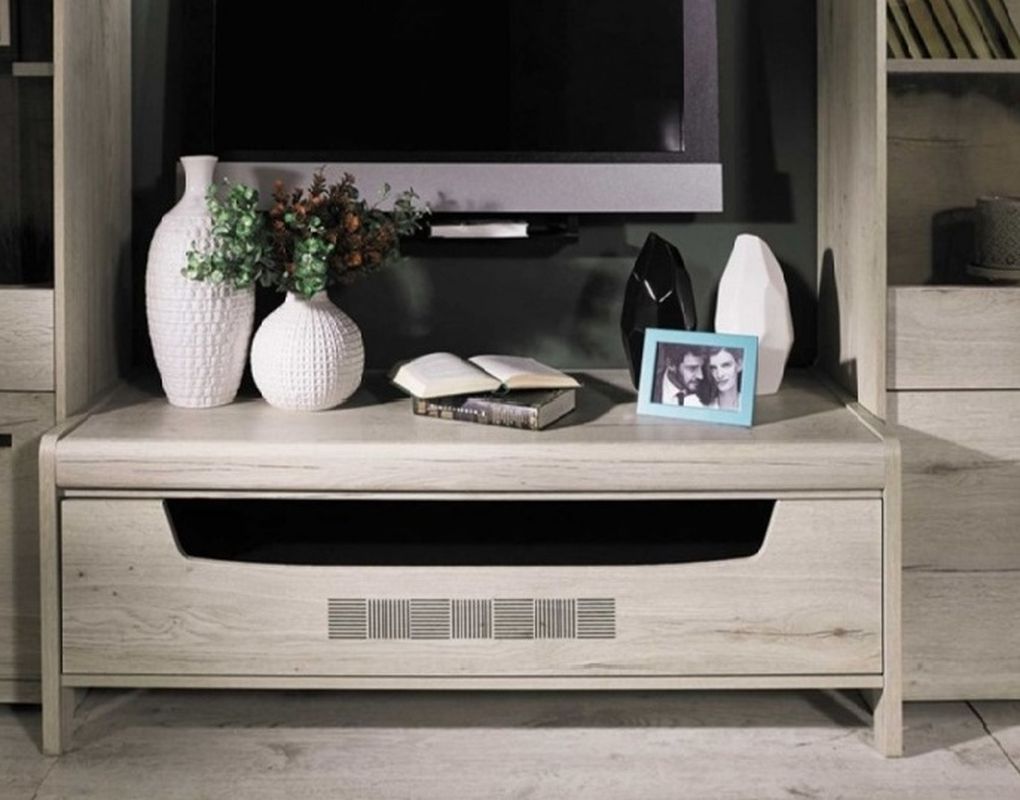 Тумба под ТВ Мале дополнена широким выдвижным ящиком для личных вещей, разделенным внутри на два отдела. Шариковые направляющие надежно удерживают ящик при открывании.