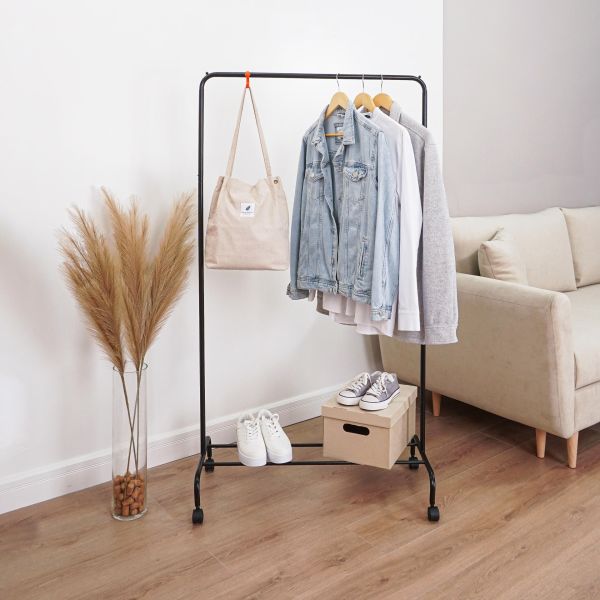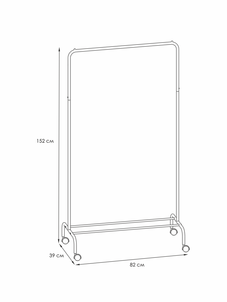 Железная перекладина способна выдержать нагрузку до 20 кг. На ней с легкостью удастся разместить около 15 плечиков. Они не будут соскальзывать на пол за счет наличия ограничителей.