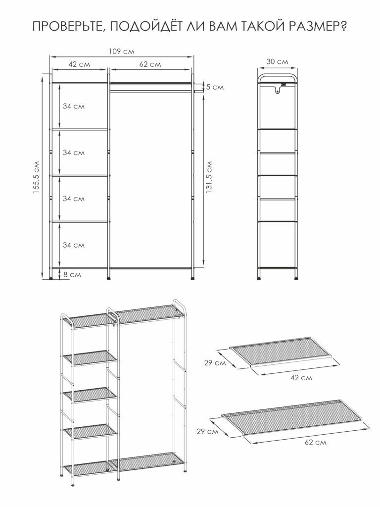Перекладина вмещает до 10 плечиков и выдерживает нагрузку до 20 кг.