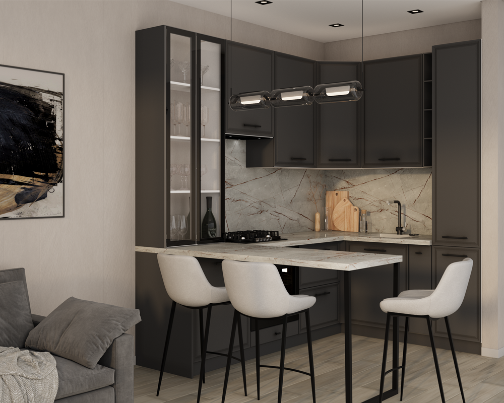 Прежде всего, пилястры выполняют декоративную функцию, украшая мебельную композицию. Также они могут выступать в качестве эффектных заглушек рядом с отдельностоящими бытовыми приборами, к примеру духовыми шкафами, и в крайних секциях у стен.